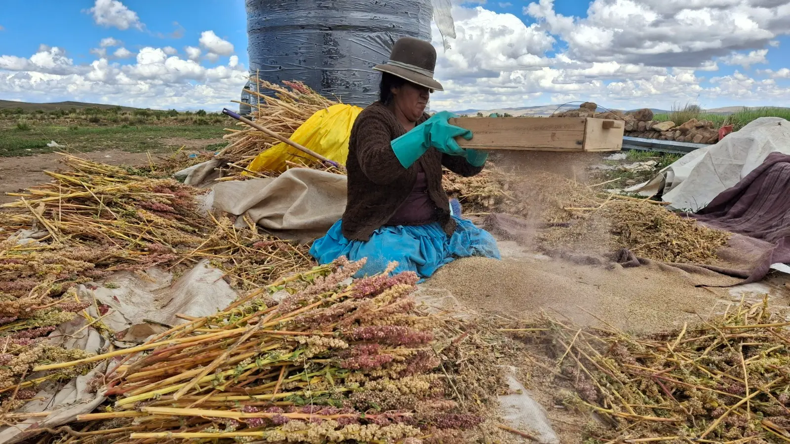Marco Patiño, who works in the area of Andean grain transformation at the Patacamaya Experimental Station, comments that currently quinoa is marketed only as a grain. UMSA is promoting added value directly for consumption, for example, by cleaning the grain to extract the saponin, which is the bitter outer layer. This allows for its commercialization as flakes after a process of lamination or pressure, which can be consumed at breakfast with yogurt, especially by children and young people, similar to granola or popcorn. With this variety of products, there are alternatives not only for different population groups but also for the preparation of known diets and menus, such as traditional dishes, among others: pesque prepared with butter, milk, cheese, anise, and of course quinoa, or phisara, which includes ingredients like potato, fava beans, cheese, beef broth, and quinoa. Both are considered excellent sources of complete protein, fiber, vitamins, and minerals, contributing to a balanced diet, digestive health, and cardiovascular health.
